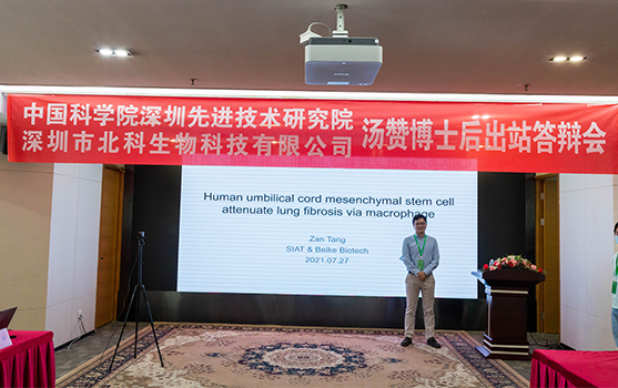 7月27日,由中国迷信院深圳进步前辈手艺研讨院与深圳市北科生物科技无限公司结合培育的博士后汤赞博士出站辩论会在北科大厦进行。辩论会上,汤赞博士报告请示了题为《脐带间充质干细胞经由过程巨噬细胞减缓肺纤维化》的出站答