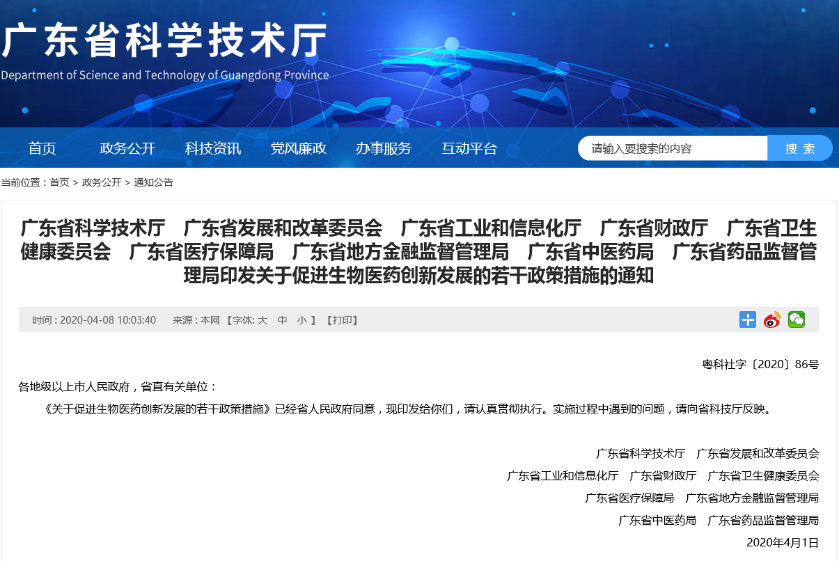 2020年4月8日,广东省迷信手艺厅、广东省成长和鼎新委员会、广东省财产和信息化厅、广东省财务厅、广东省卫生安康委员会、广东省医疗保证局、广东省处所金融监视办理局、广东省西医药局、广东省药品监视办理局