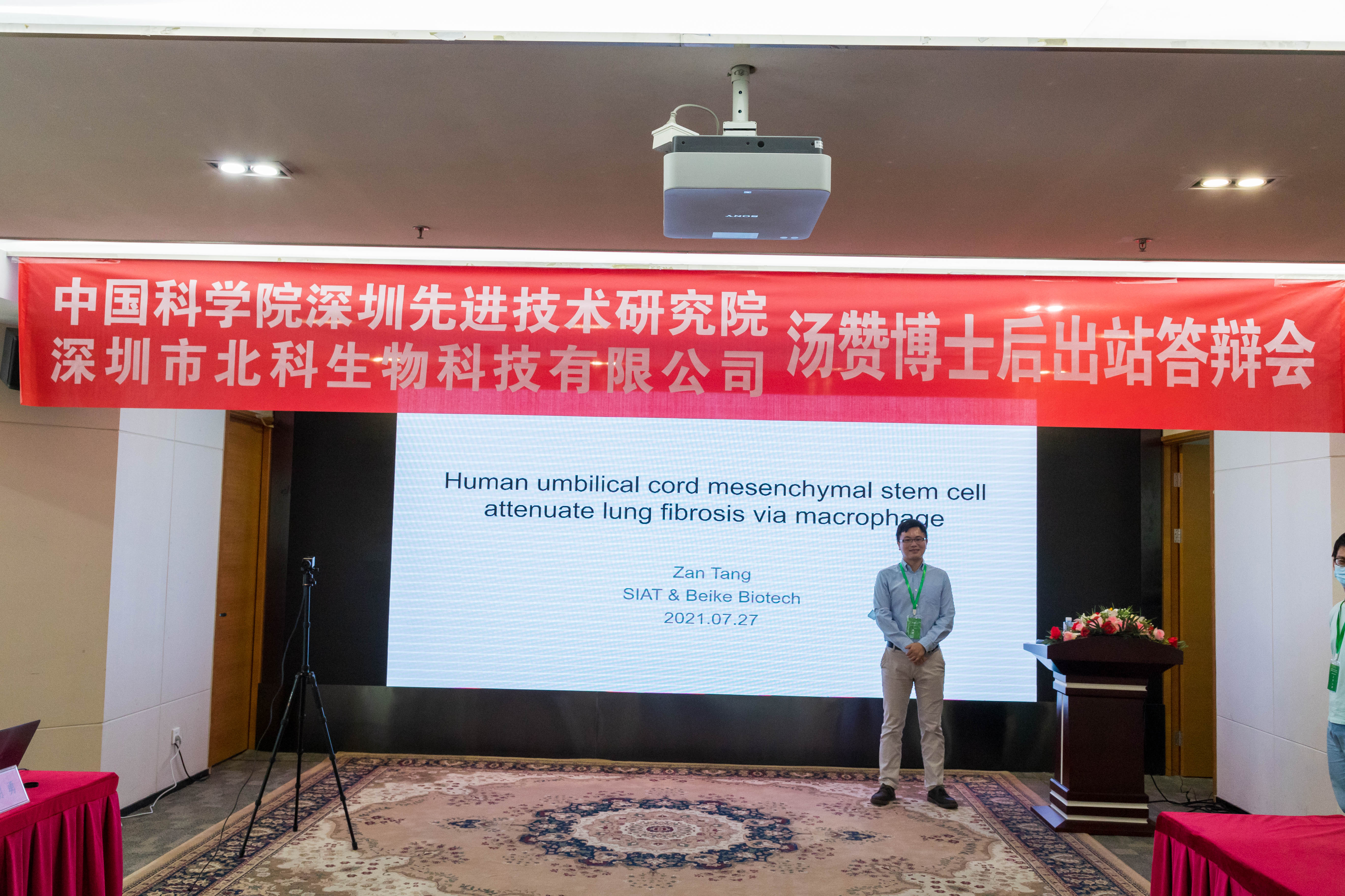 辩论会上,汤赞博士报告请示了题为《脐带间充质干细胞经由过程巨噬细胞减缓肺纤维化》的出站辩论报告。以胡隽源博士担负组长及多位专家构成的查核评审小组对汤博士的出站论文停止了专业性的全方位考评,分歧以为汤博士的博士后课题论文合适出站请求,赞成出站。