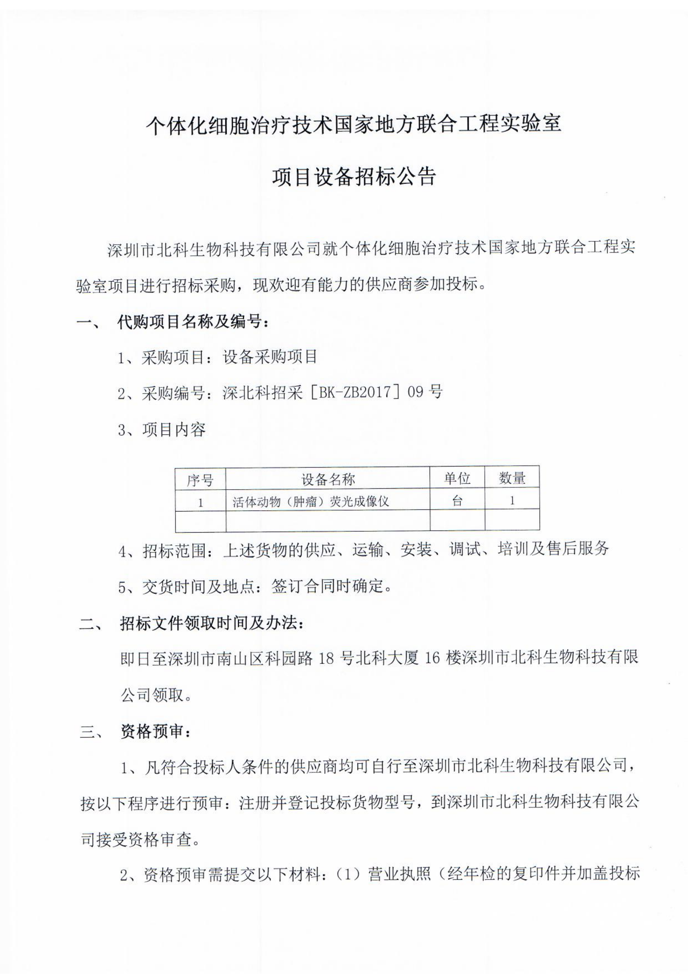 个别化细胞医治手艺国度处所结合工程尝试室名目装备投标通知布告