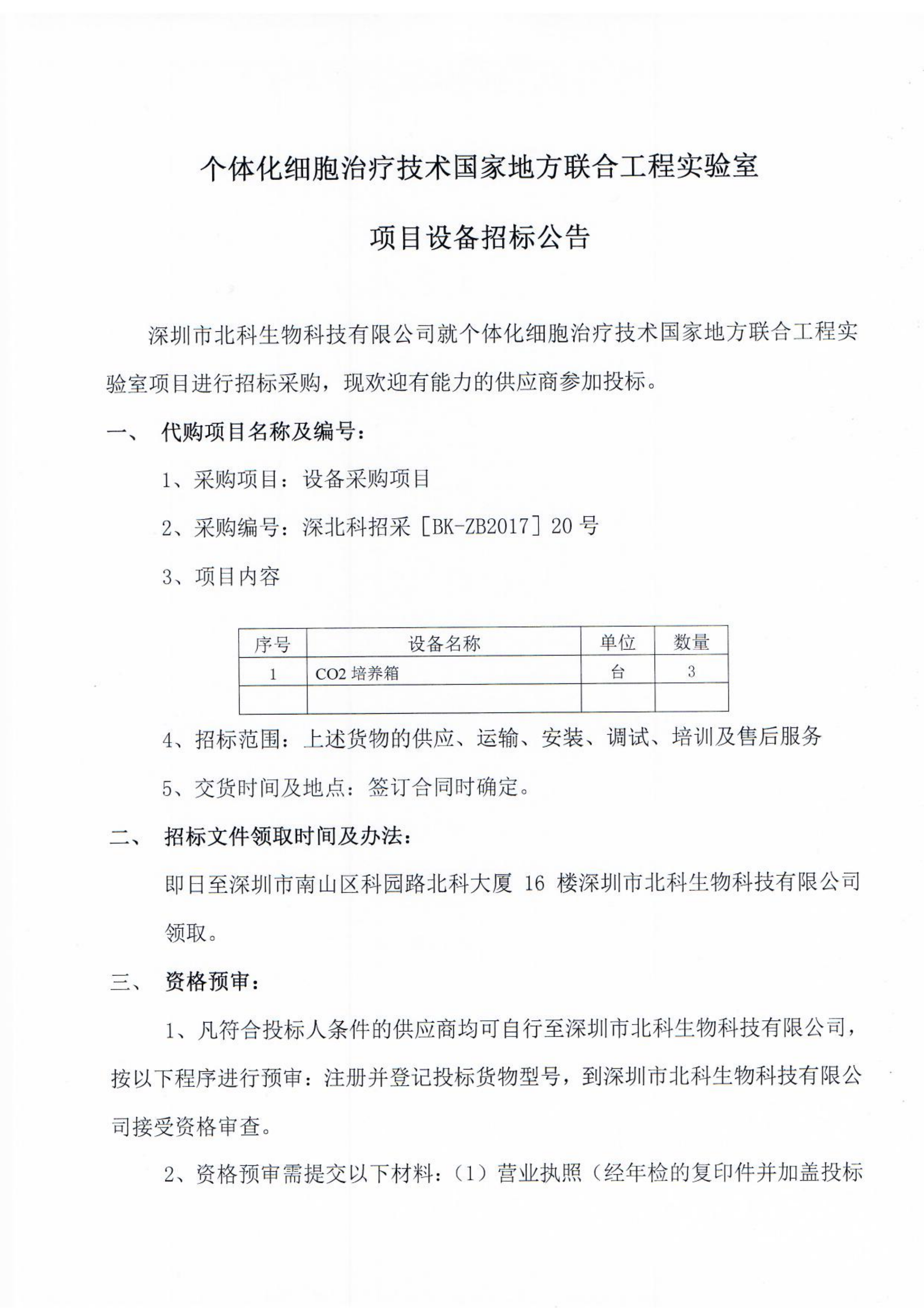个别化细胞医治手艺国度处所结合工程尝试室名目装备投标通知布告