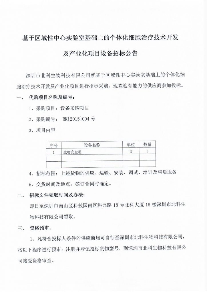 基于地区性中间尝试室根本上的个别化细胞医治手艺开辟及财产化名目装备投标通知布告