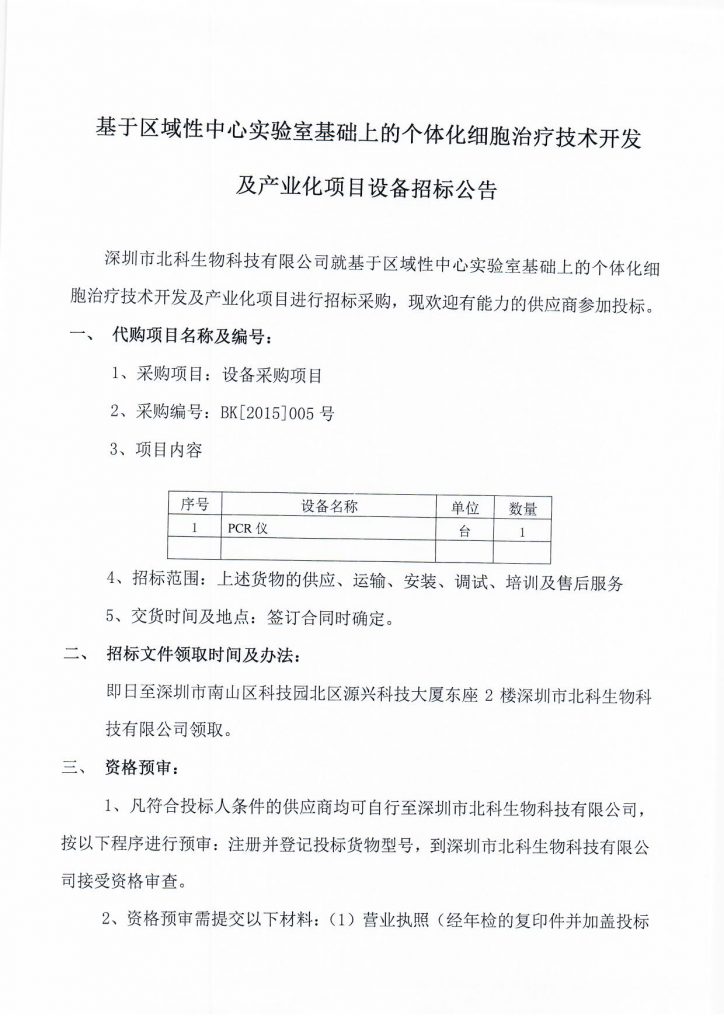 基于地区性中间尝试室根本上的个别化细胞医治手艺开辟及财产化名目装备投标通知布告
