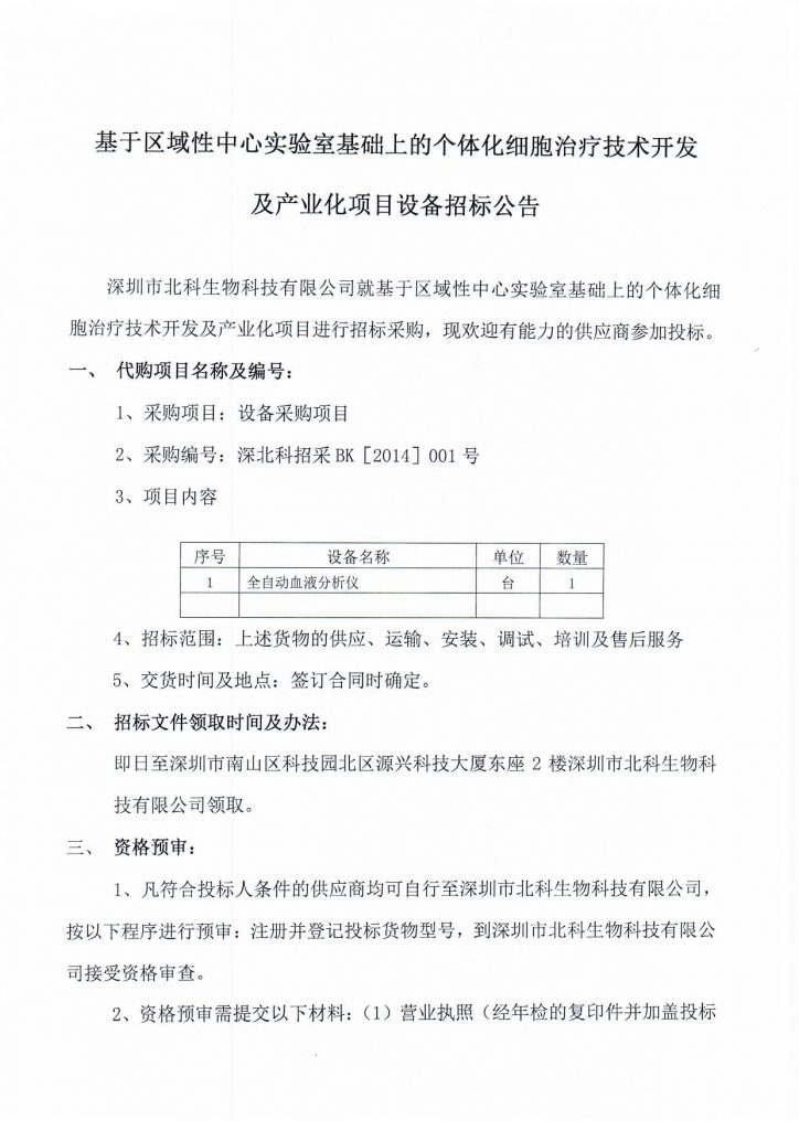 基于地区性中间尝试室根本上的个别化细胞医治手艺开辟及财产化名目装备投标通知布告