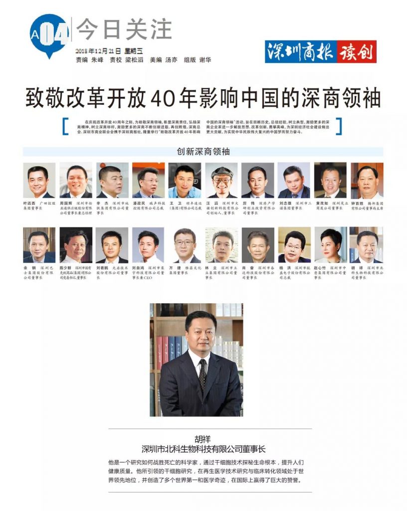 2019年1月14日,北(bei)科生物(wu)(wu)董事长胡祥博士参与第五届深商环球大(da)会(hui)颁(ban)奖盛(sheng)典,获(huo)得🧔201七年“第10一批(pi)深商风波出现反派人物(wu)(wu)”
