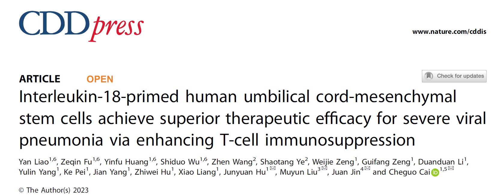 2023年1月28日,山东市北(bei)科(ke)菌物(wu)创(chuang)新科(ke)技无限(xian)大装修公司研(yan)究开发(fa)上(shang)面蔡车国给加(jia)盟商和廖延硕士的团队在(zai)(zai)国.际势(shi)利巨子(zi)(zi)学术性刊物(wu)《Cell Death & Disease》(不(bu)良影(ying)响指数(shu)=9.68,中国科(ke)学院老区(qu))在(zai)(zai)线(xian)平(ping)台签发(fa)对真菌感染指数(shu)IL-18转型型脐带(dai)间充质干(gan)神经元需加(jia)强面向危(wei)重病毒样(yang)本性支气(qi)管炎(yan🔯)倒致肺(fei)毁(hui)伤调(diao)理作用(yong)与(yu)功(gong)能主(zhu)治(zhi)的专题(ti)研(yan)讨(tao)作用(yong)与(yu)功(gong)能主(zhu)治(zhi)。论文(wen)题(ti)为:“Interleukin-18-primed human umbilical cord-mesenchymal stem cells achieve superior therapeutic efficacy for severe viral pneumonia via enhancing T-cell immunosuppression”。最近几年来。北(bei)科(ke)生(sheng)物(wu)科(ke)研(yan)功(gong)效转化(hua)稳步晋升,不(bu)只表现在(zai)(zai)“量的增加(jia)”上(shang),更表现在(zai)(zai)“质的奔腾”上(shang)。北(bei)科(ke)生(sheng)物(wu)在(zai)(zai)高水平(ping)论文(wen),出格是国际权势(shi)巨子(zi)(zi)期(qi)刊的学术论文(wen)颁(ban)发(fa)方面不(bu)时取(qu)得冲破, 恰是其科(ke)研(yan)气(qi)力和手(shou)艺(yi)立(li)异方面的气(qi)力表现。