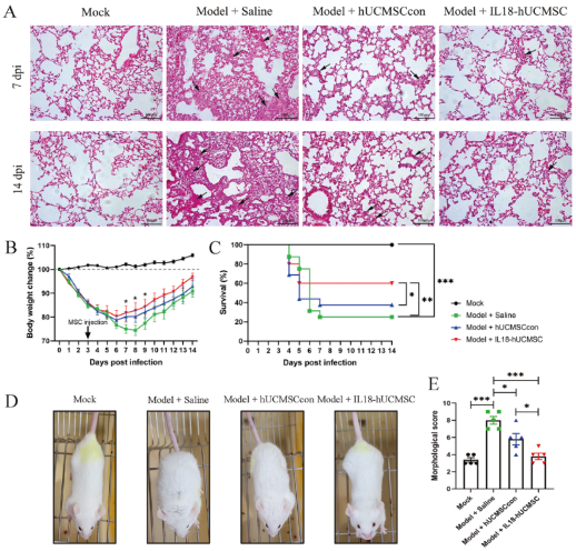 图2 IL-18引领MSCs很明显突(tu)飞猛进(jin)病毒(du)有(you)哪些性肺部感(gan)ꦕ染小鼠根治功用